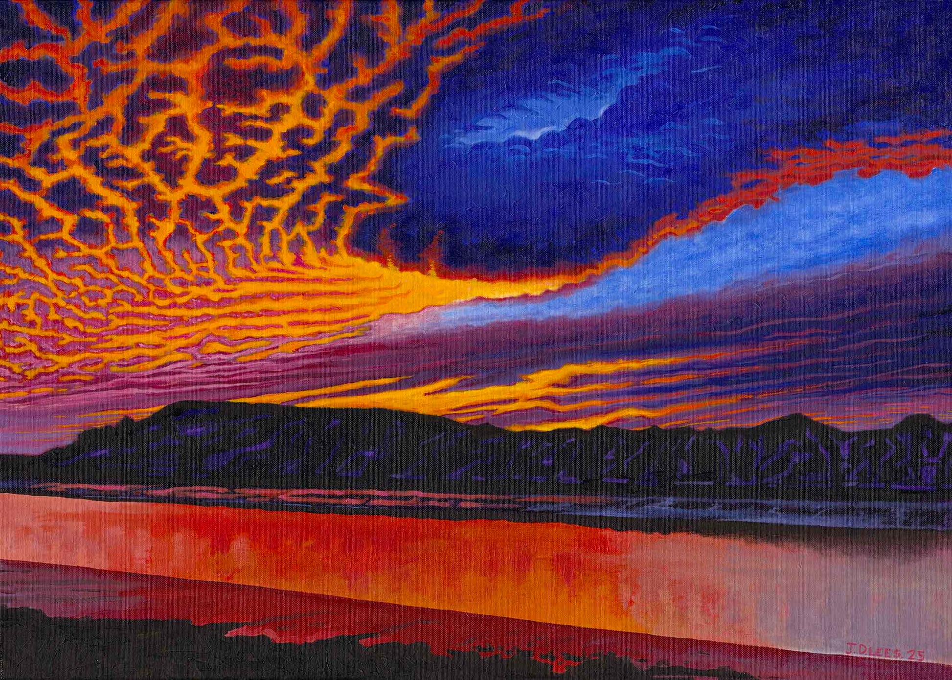 This piece revisits the same scene captured in Kippford Sunset #1, offering a fresh exploration of the landscape. Jonathan experimented with layering techniques here, demonstrating his commitment to artistic growth and his continual drive to challenge himself.